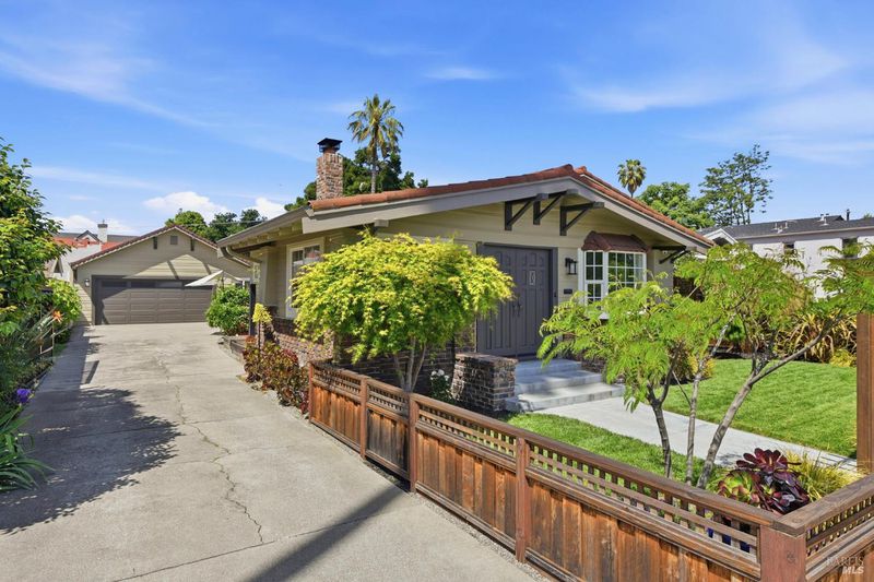 Palm Haven Craftsman: Historic Charm, Modern Soul. Located in Willow Glen's historic Palm Haven neighborhood known for its palm-lined streets, summer porch parties, and local parades this single-story Craftsman home offers a great blend of early 20th-century character and updated infrastructure. The interior features classic details like tray ceilings and a restored wood-burning fireplace. While the aesthetic remains historic, the essential systems have been modernized with hardwood floors throughout, copper plumbing, updated electrical, new HVAC, and a water softening system. The layout begins with an enclosed front porch that leads into a bright living room and a formal dining room, both featuring original baseboards and picture rails. The kitchen was updated in 2022 with quartz countertops, a Viking stove, and Cafe appliances. The primary bedroom is large enough for a California King and includes a walk-in closet, while the two full bathrooms have been tastefully remodeled one of which serves as a convenient dual-entry bath between the bedrooms. At the back of the home, a sunroom provides a flexible space for a third bedroom, office, or hobby room. The 6,840-square-foot lot is fully enclosed and landscaped for privacy. The backyard includes a custom Redwood pergola and an edible garden with avocado, citrus, and a plum-nectarine-peach hybrid tree. For parking, a solar-powered gate leads to a long driveway with space for multiple cars, a large RV or a safe space for children to play. Practical extras include a detached two-car garage with a side office and stand-up attic, plus a clean basement ideal for storage or a wine cellar. Best of all, you're just a short walk from Palm Haven Park, Three Creeks Trail, and the popular shops and dining on Lincoln Avenue.