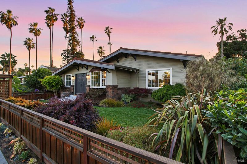 Willow Glen's historic Palm Haven neighborhood known for palm-lined streets, porch parties & parades this single-story Craftsman home offers early 20th-century character & updated infrastructure. The interior features classic details like tray ceilings & a restored wood-burning fireplace. While the aesthetic remains historic, the systems have been modernized w/ hardwood flrs, copper plumbing, updated electrical, new HVAC & water softening system. The layout begins with an enclosed front porch that leads into a bright LR & formal DR, both w/ original baseboards & picture rails. The kitchen was updated in 2022 w/ quartz counters, Viking stove & Cafe appliances. The primary bdrm is large enough for a Cal King & walk-in closet, while the 2 full baths have been remodeled one serves as a convenient dual-entry bath between the bedrooms. A sunroom provides a space for a 3rd bdrm, office, or hobby room. The 6,840-sf lot is enclosed & landscaped for privacy. The backyard includes a custom Redwood pergola & edible garden. Solar powered driveway gate. detached 2-car garage w/ a side office plus a clean basement ideal for storage. Close to Palm Haven Pk, Three Creeks Trail & Lincoln shops!