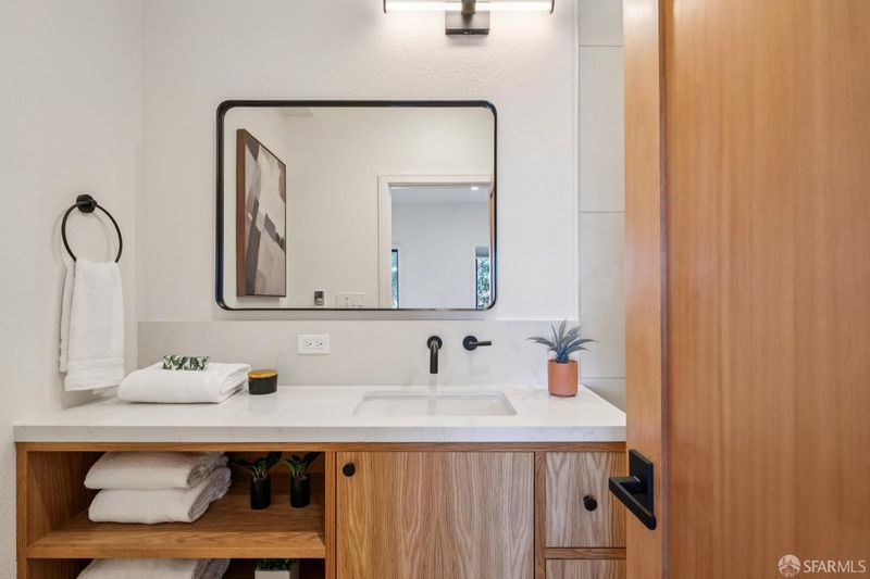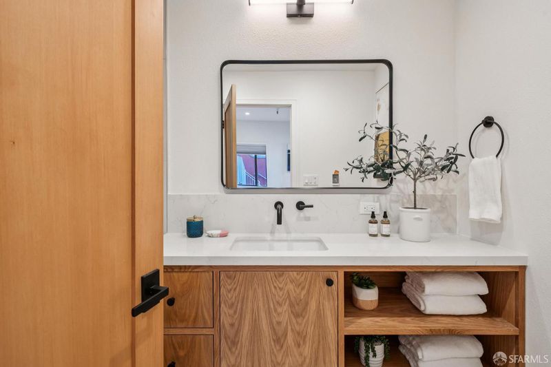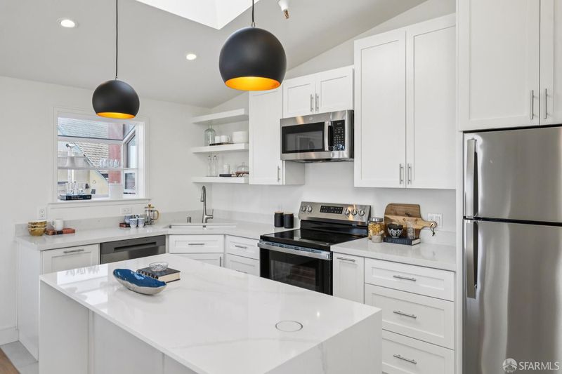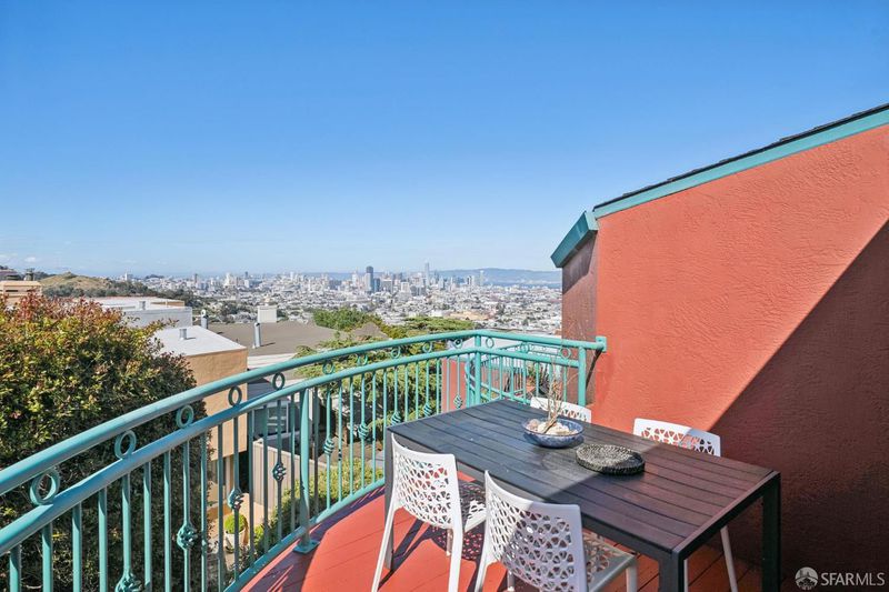 A rare blend of volume, light, and quiet, this recently renovated two-bedroom, two-and-a-half-bath residence at the Spanish Steps lives like a private skybox above San Francisco. Tucked just off Market Street, the home offers an unexpected sense of calm while delivering sweeping views that define its setting, with a subtle Mediterranean character throughout. The main living level unfolds in an airy, open plan anchored by an updated kitchen with new finishes and appliances. Skylights draw in soft natural light, while a private deck off the living room captures wide-open views from morning light to a sparkling evening skyline. A powder room completes this level. On the entrance level, two generously sized bedrooms offer comfort and flexibility. One features flexibility for a guest suite/office with a custom Murphy bed, built-ins, and a renovated en-suite bath. The other, the primary suite, includes an updated ensuite and a large private deck with views from the hills and Sutro Tower to downtown and across the bay. In-unit laundry is conveniently located on this level. This condo comes complete with one-car parking and easy access to both the Castro and Noe Valley via the nearby Romain Street pedestrian bridge.