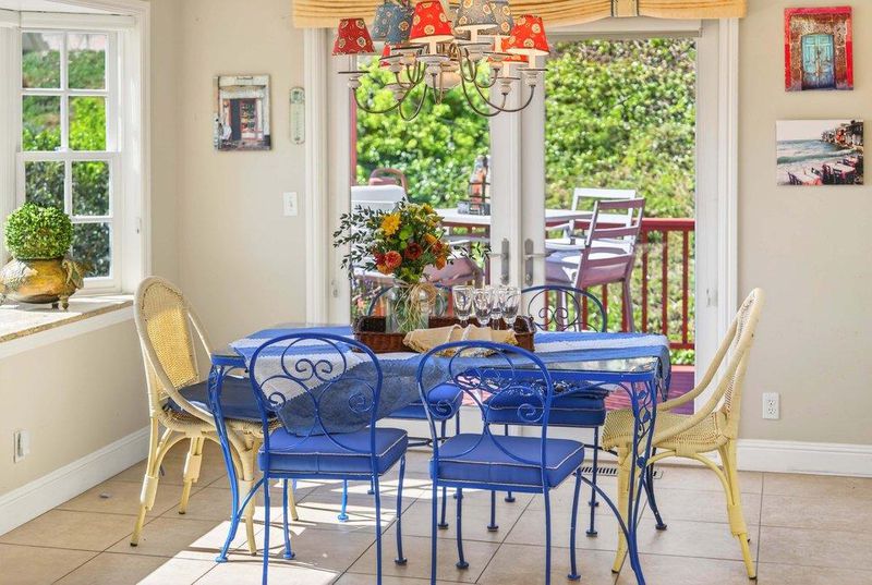 Bienvenue to this stunning Country French within walking distance to Rio Del Mar beach. This unique residence features an open concept main floor plan, with 3 bedrooms and large bonus room conveniently situated on the ground floor. The kitchen is well-equipped with modern amenities, including soft close drawers and cabinets, granite countertops, a cobalt blue Viking stove, Bosch dishwasher, and French door refrigerator. Home has forced air heating and offers a spacious and inviting ambiance with open beam ceiling, skylights and soaring ceilings. Additional features include gas fireplace, tiled floor, soaring ceilings, forced air heating, and skylights. Enjoy the added benefits of energy-efficient features such as low flow toilet, double pane windows, LED lighting, and a brick courtyard in front for visitors. You can hear the ocean waves and feel the ocean breezes from the property.