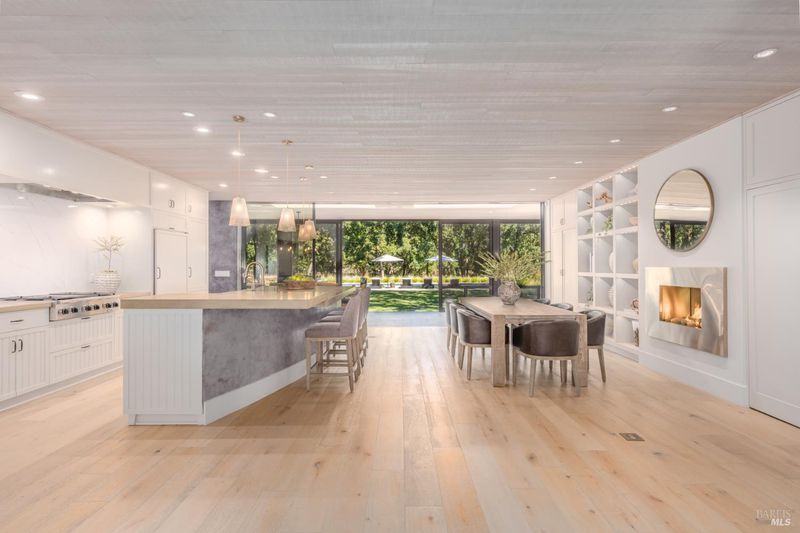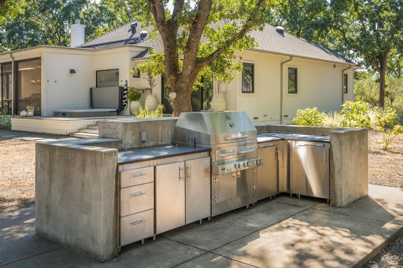 Tucked behind a new custom entry gate at the end of a charming country road, this ~3,160 sq. ft. modern Wine Country retreat offers seamless indoor-outdoor living on 3.02 oak-studded acres, with approved plans for a ~1,200 sq. ft. 2BD ADU. The 4BD/3BA home features newly installed white-oak floors and Fleetwood sliders that open to a dramatic screened sunroom for al fresco entertaining, complete with dining and lounge areas, skylights, speakers, and a heater. The chef's kitchen centers around a striking concrete island with marble slab backsplash, custom cabinetry, premium appliances, and a separate scullery with wine storage and extra refrigeration. Resort-style grounds include a 13'60' pool with new automatic cover, fire pit, fruit trees, and level space for tennis or pickleball courts. The primary suite enjoys a private hot tub. A 3-car garage offers epoxy floors, gym flooring, and new translucent doors. Additional updates include a new roof, gutters, drainage, Sonos, security with cameras, HVAC, pool heater, and landscaping with 15 olive trees. Ideally located minutes to Sonoma Plaza, The Lodge at Sonoma, Wit & Wisdom, Train Town, wineries, restaurants, trails, and other vacation amenities.