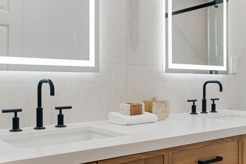 - Double Sinks, Full on Ground Floor, Primary - Oversized Tub, Stall Shower, Tile, Tub in Primary Bedroom, Updated Bath
