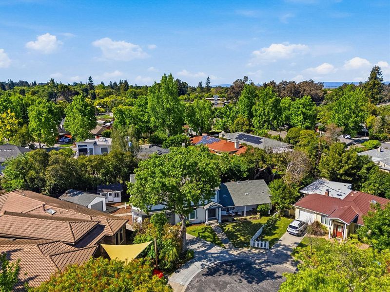 Rare quiet, cul-de-sac privacy, designer upgrades, & future expansion potential in Palo Altos desirable Green Gables. This thoughtfully updated 2-story home offers 3k+ sq ft with 6 BD (incl. 2 en-suites) & 5 BA on an expansive lot surrounded. High-quality materials & top-tier appliances throughout. Chefs kitchen features Thermador high-end appliances, large island, & custom cabinetry. Bathrooms finished w/ Kohler fixtures & Porcelanosa tile. Luxurious primary suite includes freestanding Duravit soaking tub, oversized walk-in shower, dual vanities, designer lighting, & private toilet room. Additional highlights include smart toilets, LED mirrors, & curated finishes across secondary baths. Modern features include floating glass handrail and 2-zone heating system w/ Nest controls. HVAC piping in place for future A/C. Spacious living areas anchored by a contemporary fireplace w/ seamless indoor-outdoor potential via kitchen pass-through. Backyard offers a large lawn ideal for play, entertaining, or pets. Detached office cottage plus a detached 1-car garage. Easy to convert attached 2-car garage into JADU (~400+ sq ft), expanding total to ~3,500 sq ft. Copper plumbing, double-pane windows, newer roof. Close to parks, shopping, commute routes, & top-rated schools.