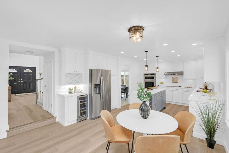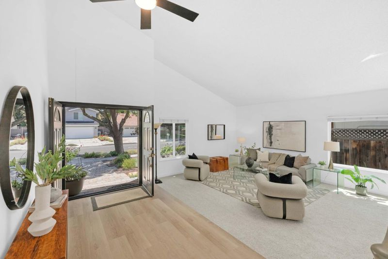 Rare East-facing home with a 3-car garage, remodeled kitchen, and professionally designed landscaping, ideally situated on a quiet cul-de-sac in Blossom Valley's scenic foothills. Soaring ceilings and abundant natural light create an airy, inviting feel, complemented by updated flooring and a seamless flow throughout. The remodeled kitchen is the true centerpiece, featuring crisp white cabinetry, quartz countertops, a spacious island, and an open layout that connects effortlessly to the dining area and breakfast nook. Designed for both everyday living and entertaining, the main living spaces feel connected yet comfortable, with large windows framing peaceful hill views. The outdoor space offers a covered patio and an inviting setting to relax or host. Additional upgrades including reverse osmosis, whole-home water filtration, and a water softener enhance everyday living. Ideally located near parks, shopping, dining, commuter routes, and a nearby golf course, this home offers a rare balance of tranquility and convenience.