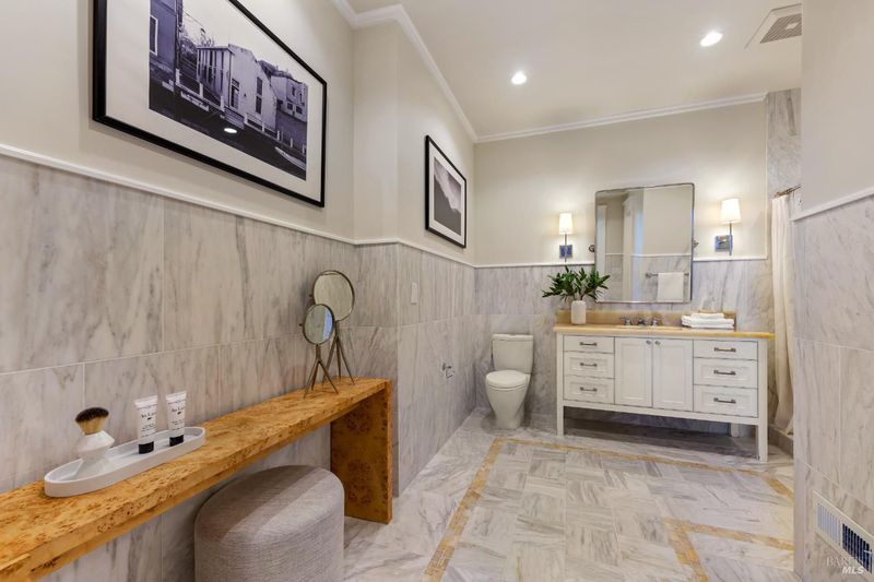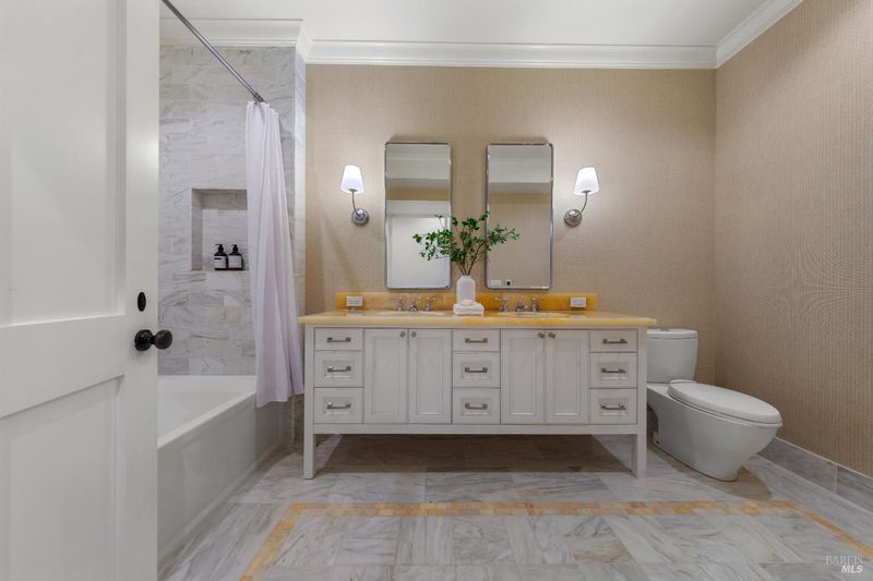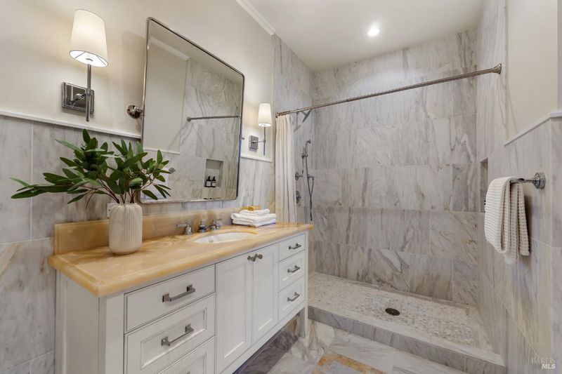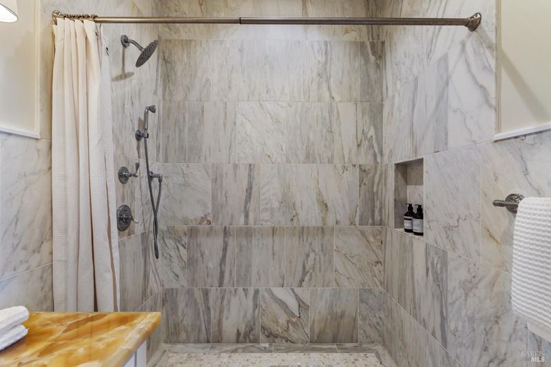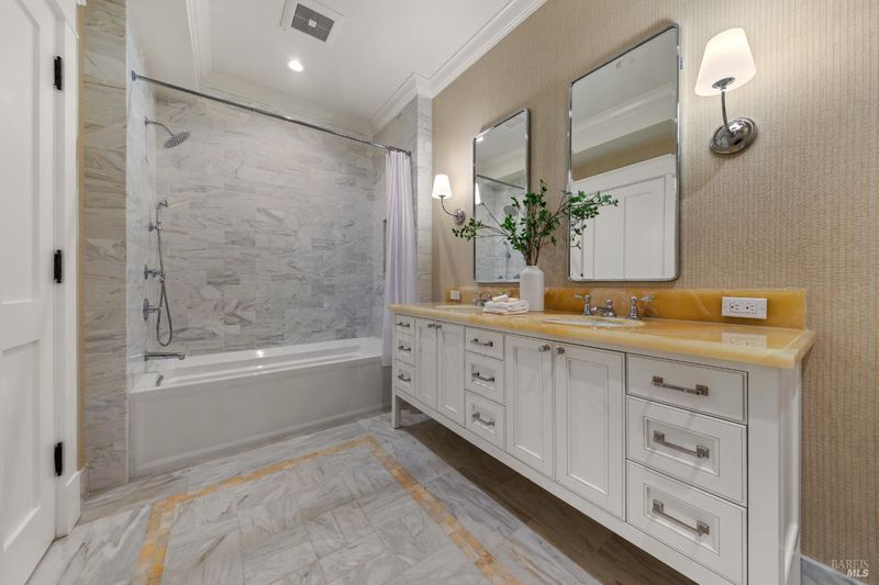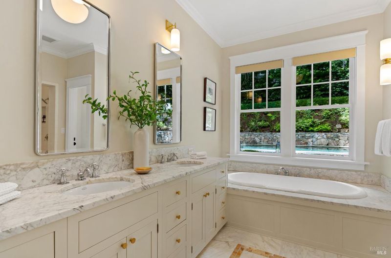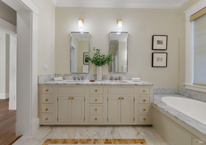 - Double Sinks, Marble, Shower Stall(s), Soaking Tub, Tub