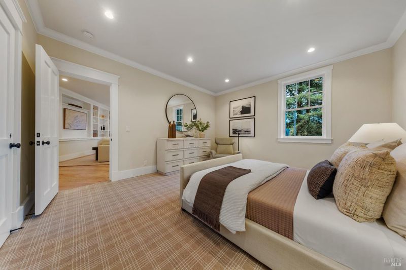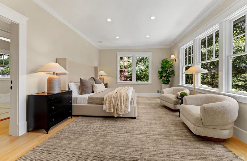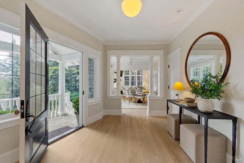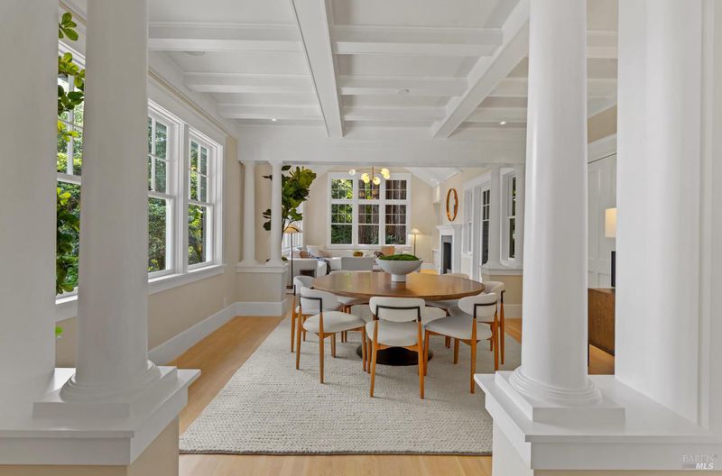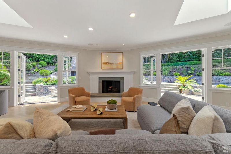 Hampton's inspired design in this spectacular 5 bedroom shingle style Ross residence. Meticulous blend of high end design incorporates bespoke lighting, custom wall coverings, soaring box beam ceilings, divided light windows, and the extensive use of white marble throughout. Beautifully appointed grand scale great room opens directly to the resort like grounds with seamless indoor/outdoor living throughout. Secondary family room on lower level. Perfectly site placed on a verdant +- 1/2 acre property with multiple level outdoor entertaining spaces. In ground pool & spa, outdoor fireplace, large level lawn, and al fresco dining areas. Mature plantings with organized, east coast inspired landscaping throughout. HUGE parking court allows for ample off street parking. Just blocks from the award winning K-8th grade Ross School and Ross Common. Gated, quiet and very private: A rarity for an in town location. Blocks to the vast network of hiking and biking trails in the Phoenix Lane recreational area.