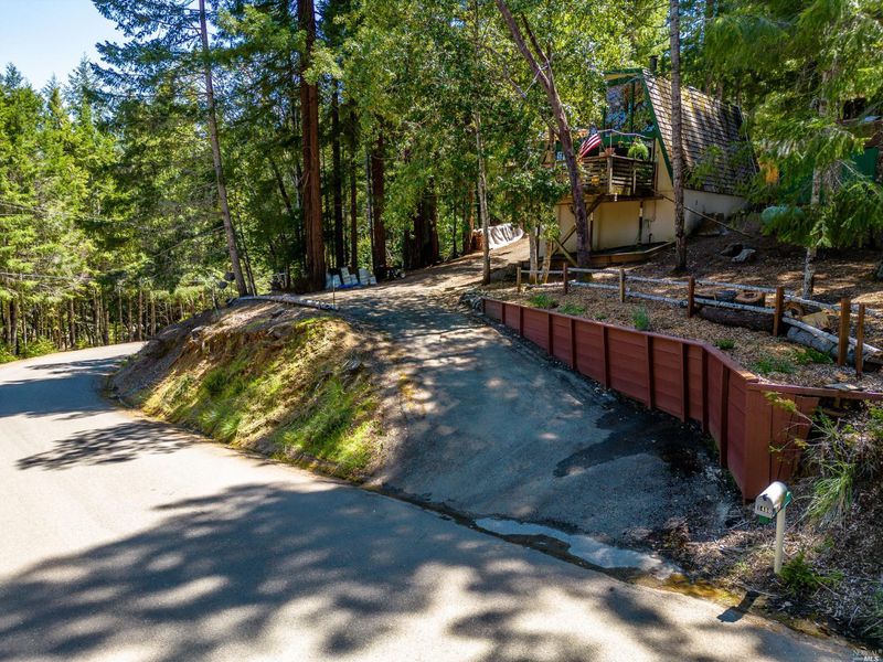 A-frame mountain cabin on a large lot in Brooktrails! This two bedroom, two bathroom home is approximately 1,200 square feet with the primary bedroom and bathroom in the upstairs loft and another bedroom and bathroom on the main level. Long driveway accommodates multiple vehicles and two Tuff sheds offer additional storage. Relax on the back deck and enjoy the peace and tranquility of 0.62 acres of land in beautiful Brooktrails!