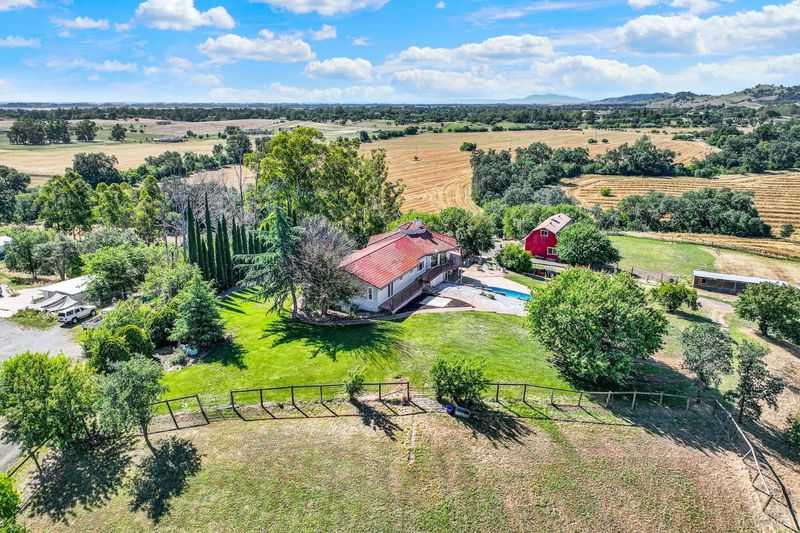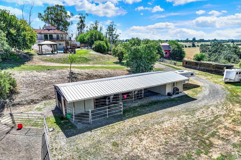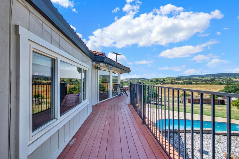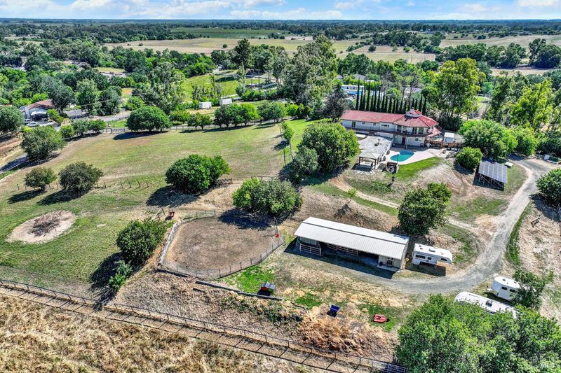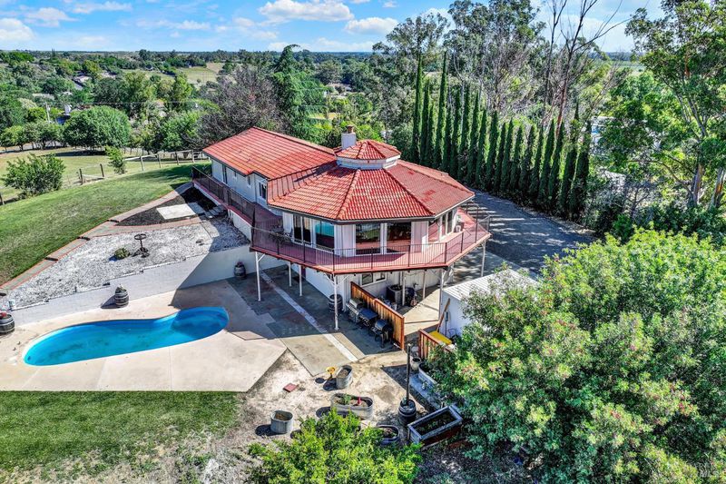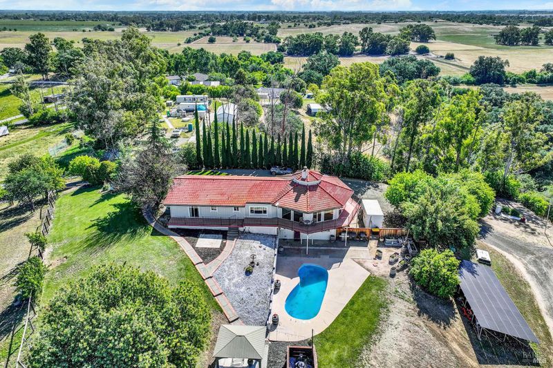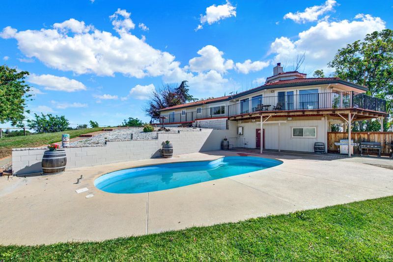 5 usable acres with horse arena, horse/workshop barn, Jr. ADU, pool, owned solar, newer well, and generator transfer switch set against sweeping views of the Vaca foothills. Wake up to quiet mornings, wide-open skies, and the kind of stillness you can feel. As the day winds down, sunsets stretch across the Vaca foothills, painting the horizon right from your own backyard. This is country living the way it's meant to be. Set on 5 acres of fully usable land, this property invites a slower, more grounded lifestyle where there's room for horses to roam, gardens to grow, and space to breathe. It's the kind of place where mornings start outside and evenings end under the sky. Just steps from the sparkling pool, a thoughtfully converted space with its own private entrance creates a tucked-away retreat for guests, extended family, or a quiet escape of your own. Picture summer days flowing from the pool into your own pool house hangout, or hosting loved ones with space that feels both connected and private. Life here is supported by the details that matter a newer well (drilled approx. 2 years ago), owned solar, and a generator transfer switch ready when you need it giving you a sense of comfort and reliability in a rural setting. The land itself is a horse lover's dream, with multiple outbuildings and barn structures, and a wrap-around deck that invites you to slow down and take it all in. Every angle offers a view, every space offers possibility. Private, peaceful, and still within reach of town, this is more than a property it's a way of living that's becoming harder and harder to find but needed more than ever!