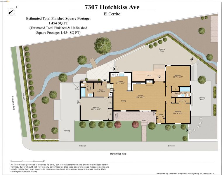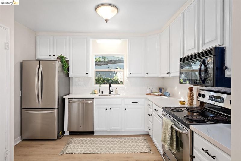 Welcome to 7307 Hotchkiss Ave, where convenience meets tranquility. Set on a desirable corner lot, this charming 3 bedroom, 2 bathroom home offers a rare blend of natural beauty and modern comfort. A majestic mature oak tree and nearby creek create a serene, park-like setting, providing a peaceful retreat just moments from everyday amenities. Bathed in natural light, the primarily single-level layout features refinished hardwood floors and an inviting living space anchored by a classic brick fireplace with built-in cabinetry. The updated kitchen is both stylish and functional, ideal for everyday living and effortless entertaining. The flexible floor plan includes a lower-level bedroom and full bathroom, perfect for guests, a home office, or extended living. Thoughtful upgrades such as a brand-new HVAC system and compliant sewer lateral add comfort and peace of mind. Enjoy seamless indoor-outdoor living with a deck off the living room, a newly fenced lounge and play area, and a private side-yard patio, ideal for relaxing or hosting gatherings beneath the shade of the oak canopy. Ideally located with easy access to El Cerrito Plaza BART, HWY 580 and 80, El Cerrito HS, Costco, and vibrant shops and restaurants, this move-in ready home offers the best of El Cerrito living!