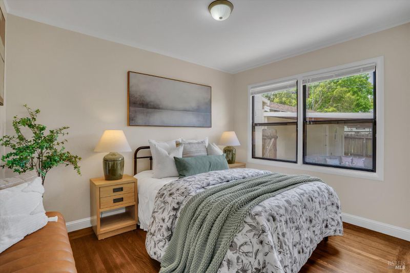 Thoughtfully updated and full of character, this 3-bedroom, 1-bath home blends classic charm with modern comfort. Refinished original hardwood floors bring warmth and continuity throughout the living spaces, while large windows invite in natural light. The updated kitchen features a clean, functional layout with modern finishes, ideal for both everyday living and casual entertaining. Three well-sized bedrooms, two dining areas, and one efficiently designed bath complete the interior, offering a comfortable and practical floor plan. Outside, the property opens up to a large backyard that provides endless possibilities whether for entertaining, gardening, or creating your own outdoor retreat. A covered patio extends your living space and makes year-round use easy. The detached 2-car garage with laundry hook-ups offers added convenience, storage, or potential for additional use. This home delivers a great combination of easy living, modern convenience, and outdoor living - come see for yourself!