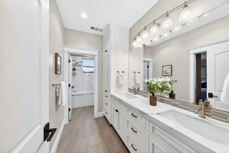 Double Sinks, Full on Ground Floor, Half on Ground Floor, Primary - Stall Shower(s), Shower over Tub - 1, Stall Shower - 2+, Tile, Tub, Tub in Primary Bedroom, Updated Bath