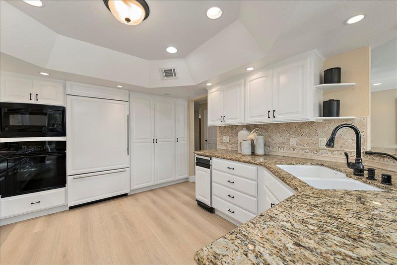 - Countertop - Stone, Oven - Built-In, Oven Range - Built-In, Refrigerator, Trash Compactor, Oven - Electric