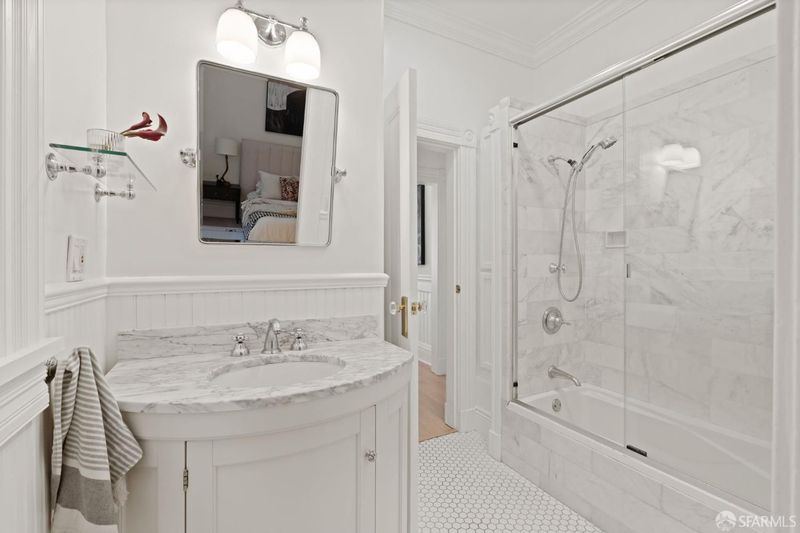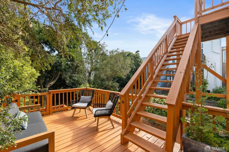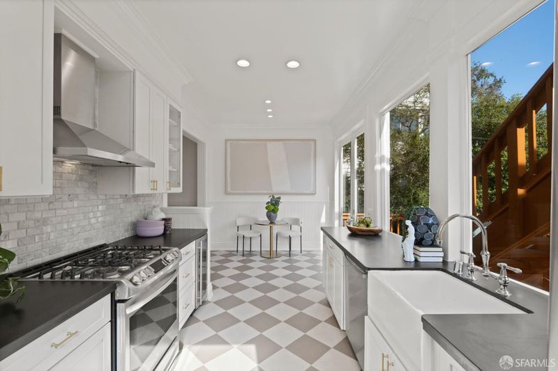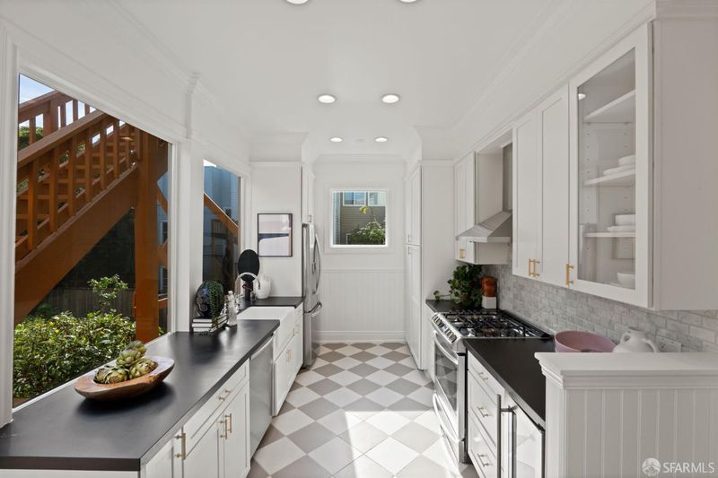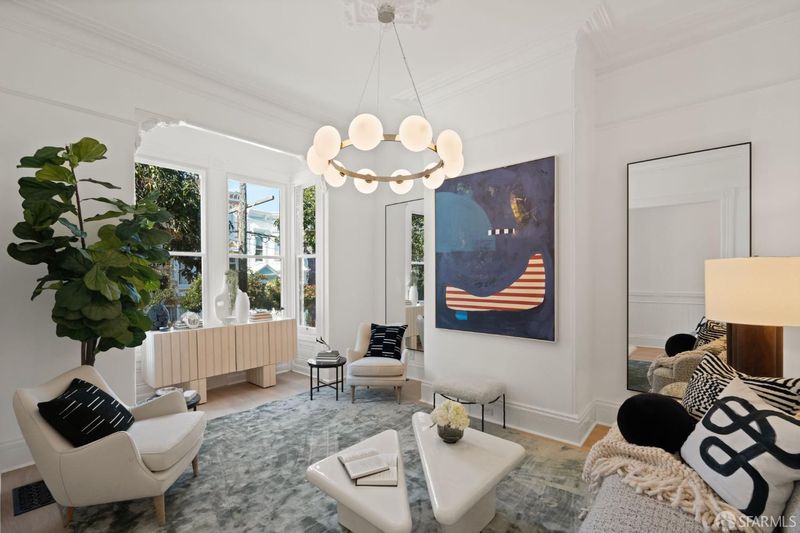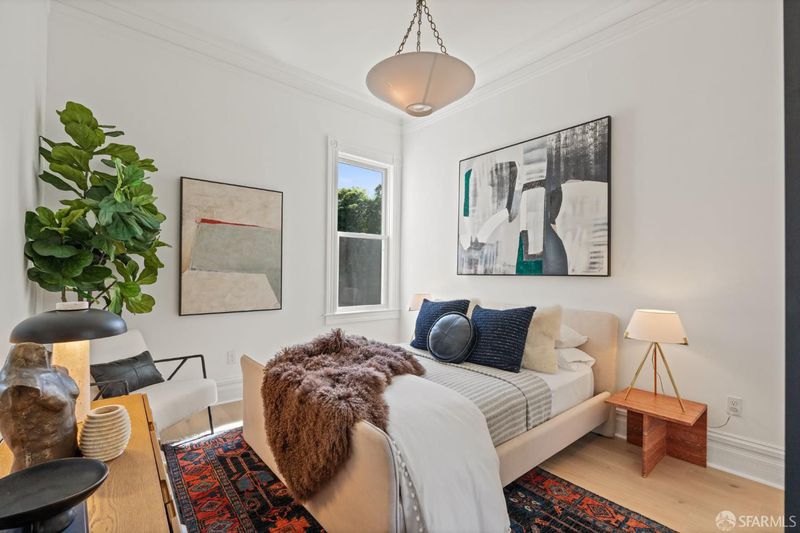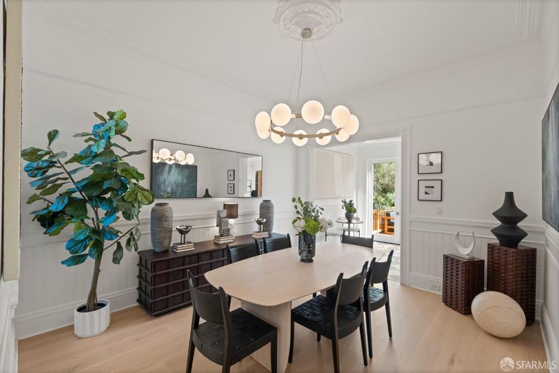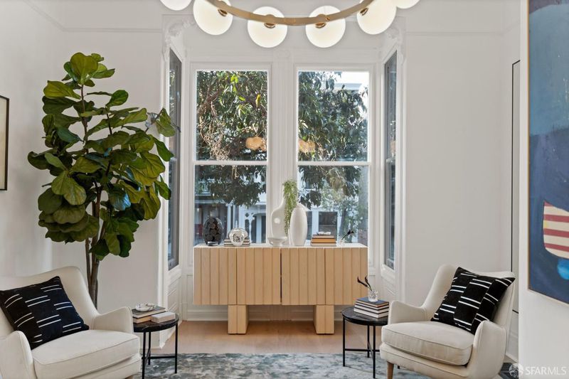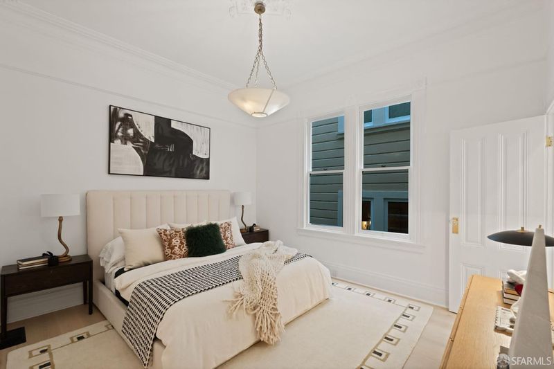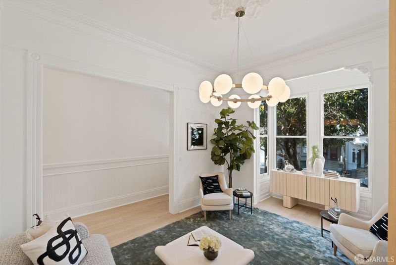 Beautifully detailed NOPA condominium. Rare blend of classic Victorian beauty, rich period craftsmanship, thoughtful updates, and one of SF's most desirable locations.Beautiful new wood floors throughout. Intricate plaster moldings and high ceilings. Graciously scaled rooms create an inviting flow throughout the residence. The spacious, flexible floor plan includes two generous bedrooms, a stately living room, a versatile bonus space for a home office and a formal dining room ideal for entertaining. Thoughtfully updated marble bathroom blends classic style with modern comfort. The bright, spacious eat-in kitchen is a chef's dream. A wall of windows floods the space with natural light and opens directly onto a private deck overlooking the lush garden below. Step outside to enjoy morning coffee or evening gatherings. The exceptionally deep lot creates a surprisingly expansive outdoor retreat. Additional amenities include parking and storage in the garage. Ideally located in the heart of NOPA, this home places you just blocks from neighborhood favorites along Divisadero Street, everyday shopping at Bi-Rite and Whole Foods, and the green expanse of the Panhandle.