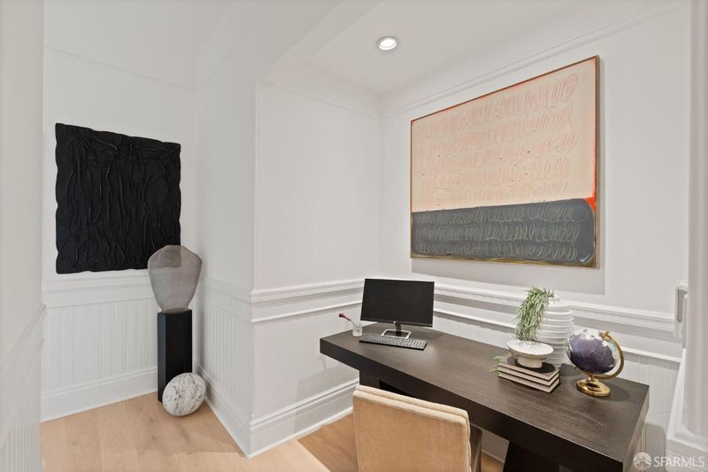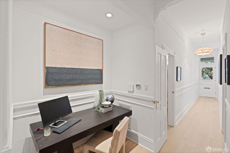 This beautifully detailed NOPA condominium is a rare blend of classic Victorian beauty, rich period craftsmanship, thoughtful updates, and one of SF's most desirable locations.Beautiful new wood floors throughout. Intricate plaster moldings, high ceilings, elegant wainscoting. Graciously scaled rooms create an inviting flow throughout the residence. The spacious, flexible floor plan includes two generous bedrooms, a stately living room, a versatile bonus space for a home office and a formal dining room ideal for entertaining. The thoughtfully updated marble bathroom blends classic style with modern comfort. The bright, spacious eat-in kitchen is a chef's dream. A wall of windows floods the space with natural light and opens directly onto a private deck overlooking the lush garden below. Step outside to enjoy morning coffee or evening gatherings. The exceptionally deep lot creates a surprisingly expansive outdoor retreat-an uncommon find in the city. Additional amenities include parking and storage in the garage. Ideally located in the heart of NOPA, this home places you just blocks from neighborhood favorites along Divisadero Street, everyday shopping at Bi-Rite and Whole Foods, and the green expanse of the Panhandle for walking, biking, or relaxing outdoors. With nearby access to public transit, tech shuttles, freeways, and close proximity to UCSF and USF, the location offers both convenience and vibrant city living.A wonderful opportunity to own a home that pairs historic San Francisco charm with an exceptional NOPA lifestyle and neighborhood setting.
