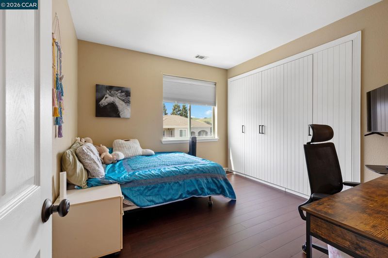 Experience refined living in the prestigious Crystyl Ranch community with this expansive 3,240-square-foot residence. Thoughtfully designed, this home offers 5 bedrooms and 3.5 bathrooms, providing a spacious and versatile layout for comfortable living. Upon entry, you’re welcomed by a grand foyer featuring a luxurious spiral staircase, soaring ceilings, and an abundance of natural light. The elegant formal living and dining rooms create the perfect setting for hosting gatherings and special occasions. The home seamlessly flows into a beautifully updated kitchen, complete with a walk-in pantry, oversized island, upgraded cabinetry, sleek countertops, and stainless steel appliances. The kitchen opens to a generous family room with a cozy fireplace—ideal for relaxing evenings at home. The main level also includes a private junior suite with French doors, Murphy wall bed and its own en-suite bathroom, a spacious laundry room, and a convenient guest half bath. Upstairs, you’ll be welcomed by a spacious and elegant primary suite featuring two large walk-in closets with upgraded cabinetry. The suite flows into your own private, spa-inspired bathroom, designed as a serene retreat for relaxation. The upper level also includes three additional well-sized bedrooms and a beautifully updated hall bathroom, offering comfort and convenience for family and guests alike. Step outside into your own private vineyard, producing grapes for your enjoyment and creating a truly unique outdoor experience. The backyard features a rustic vineyard-inspired dining area and a large sitting space, perfect for entertaining or unwinding with guests. A separate side yard offers a charming garden setting—ideal for peaceful afternoons or enjoying a quiet cup of tea. Home provides low energy bills due to Solar w/ back up battery & Tesla Car Charger. Enjoy a lifestyle of convenience and recreation with the Crystyl Ranch HOA amenities, including a clubhouse, swimming pool, and tennis courts. Nature enthusiasts will appreciate the proximity to Lime Ridge Open Space for hiking and biking. Residents benefit from being part of the highly-regarded Mount Diablo Unified School District that features Northgate High School. Commuting is seamless with easy access to 680 freeway, Concord BART station that provides efficient regional connectivity. Premier everyday shopping and dining within The Veranda and Walnut Creek Shopping Center are easily accessible for all your needs.