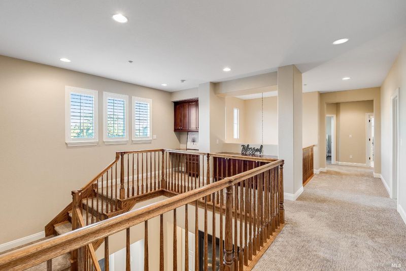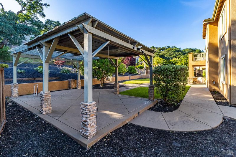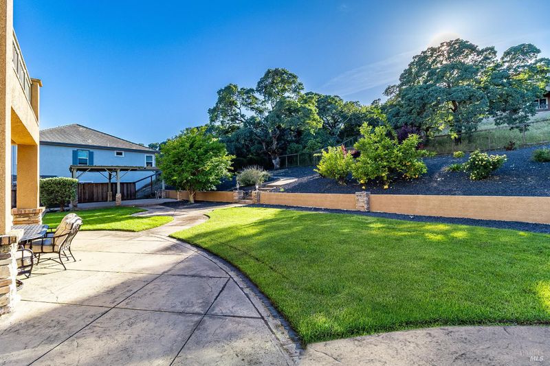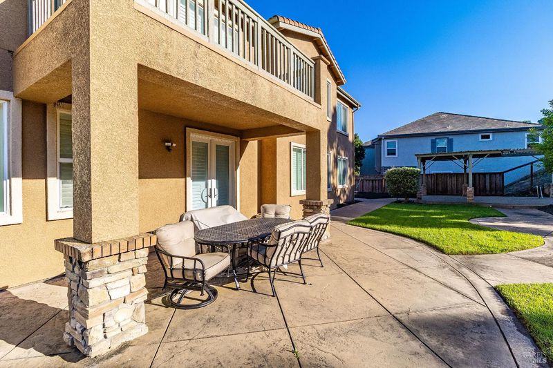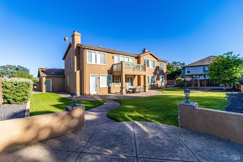 Gorgeous Eastridge Davidon home located on a highly desirable court. This spacious residence features six generously sized bedrooms plus a versatile lower-level media room ideal for a media room, theater, office, or den. The lower level includes three rooms, along with a full bath and half bath, making it perfect for guests or multi-generational living. Designed with both comfort and style in mind, the home showcases luxury stone flooring on the lower level, high-end appliances, a built-in refrigerator, and a six-burner stove in the well-appointed kitchen. Upstairs laundry adds convenience, while the expansive primary suite offers a private balcony retreat. Step outside to a large, flat backyard complete with arbor-stamped concrete, beautiful landscaping, and lush fruit treesperfect for entertaining or relaxing. With its thoughtful layout and upscale finishes, this is truly the perfect forever home.