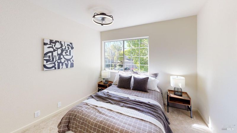 This fully renovated 3-bedroom, 2.5-bath townhome offers 1,333 sq.ft. of living space in a leafy green neighborhood. It's a Planned Unit Development, so you own the land - unlike a condo. The HOA maintains your front landscaping, exterior paint, & the roof, so you don't have to. This end unit sits on a quiet circle with no through traffic. Inside, almost everything has been replaced: flooring, interior paint, lighting, cabinetry, countertops, and hardware. The kitchen has all new stainless-steel appliances, plus a convenient breakfast bar. The living room has vaulted ceilings & a sliding glass door that opens directly to the backyard, which has no rear neighbors. Talk about privacy! The outdoor space includes a large patio, & space for gardening. The main level includes a dining room, a coat closet, pantry, and half bath. There's direct access to the 2-car garage, which includes a washer/dryer and storage space. Upstairs are 3 bedrooms & 2 full bathrooms. The primary suite includes 2 closets & a bathroom with double sinks. The community enjoys green space, mature landscaping, a pool for residents, & ample guest parking. The location offers easy access to parks, shopping, the highly rated Meadow Elementary school & transportation, including the Petaluma North SMART train station.