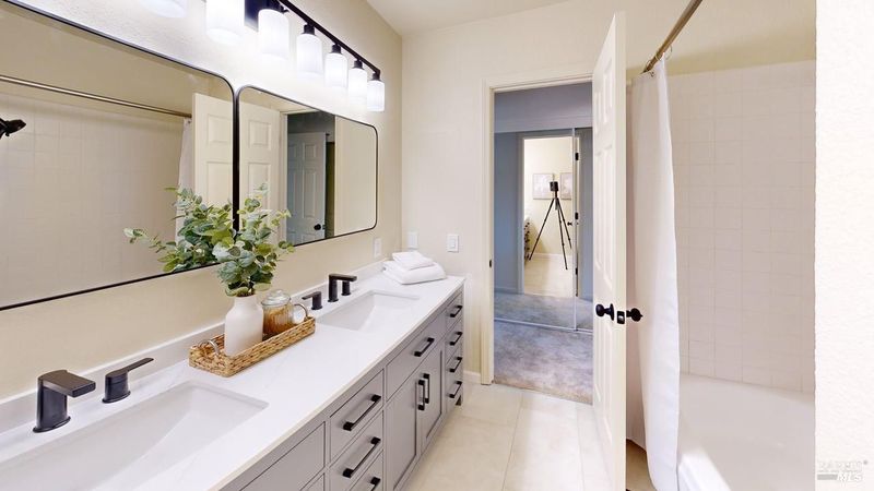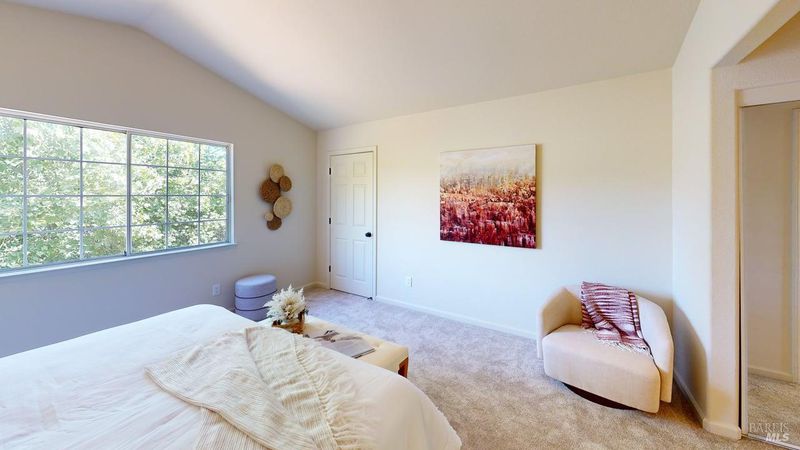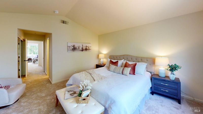 Beautifully renovated 3BD/2.5BA end-unit townhome in Sonoma Mountain Townhomes offering 1,333 sq.ft. of light-filled living. This PUD means you own the land, with HOA covering exterior maintenance, roof, and front landscaping. Freshly updated throughout with new flooring, paint, lighting, kitchen cabinetry, countertops, and stainless steel appliances. Vaulted ceilings and sliding doors open to a private backyard with no rear neighbors—perfect for entertaining, gardening, or play. Upstairs features 3 bedrooms and 2 full baths, including a spacious primary suite with dual closets and double-sink vanity. Attached 2-car garage with laundry and storage. Community pool, green space, and guest parking. Conveniently located near parks, shopping, and the Petaluma North SMART train.