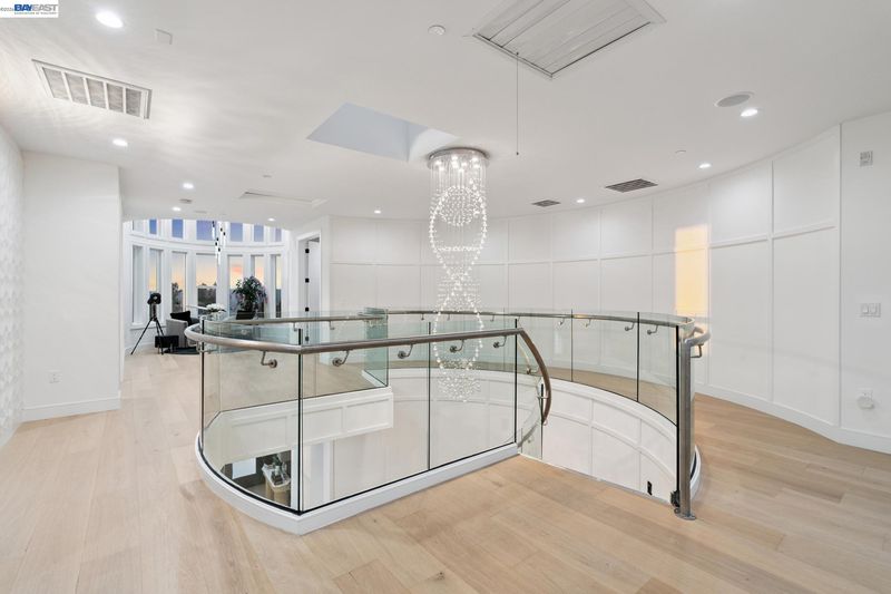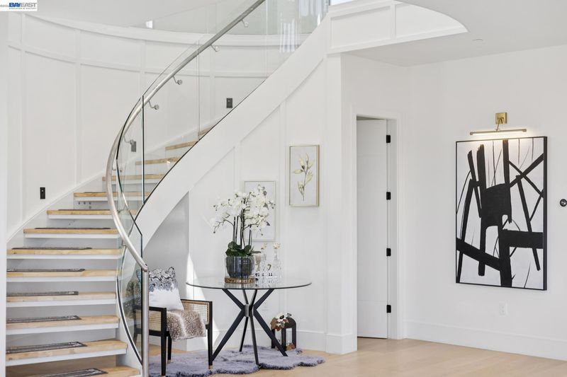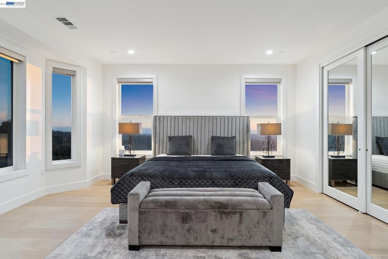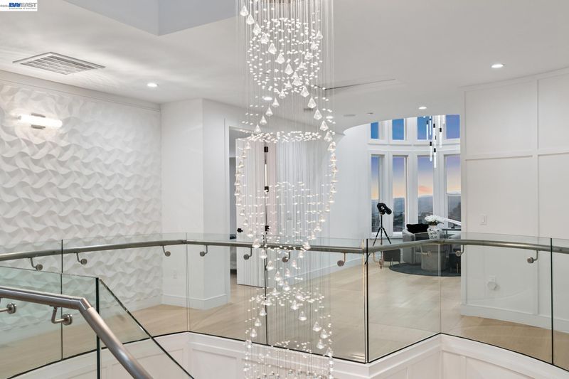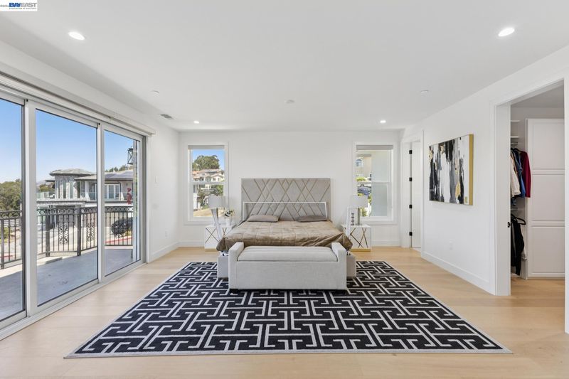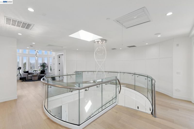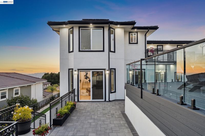 Stunning custom-built home in an exclusive gated community in the Fairview District with breathtaking Bay and SF skyline views. This 4-bedroom, 4-bathroom residence offers luxurious living with all ensuite bedrooms featuring walk-in closets. Step through the grand double doors into a soaring entry with a circular glass staircase and a custom chandelier. The open-concept layout features rich hardwood floors throughout, two full kitchens, including a prep kitchen, and two laundry rooms one on each level for added convenience. The main kitchen features premium appliances, quartz countertops, and modern finishes. Multiple view decks and large windows showcase panoramic vistas. The primary suite offers a spa-like bath with a soaking tub, walk-in shower, dual vanity, and custom tilework. Additional highlights include a paid-off solar system, EV charger, whole-house ventilation system, and beautifully landscaped outdoor spaces. A rare opportunity to own a showstopping home with privacy, functionality, and views in the Bay Area.