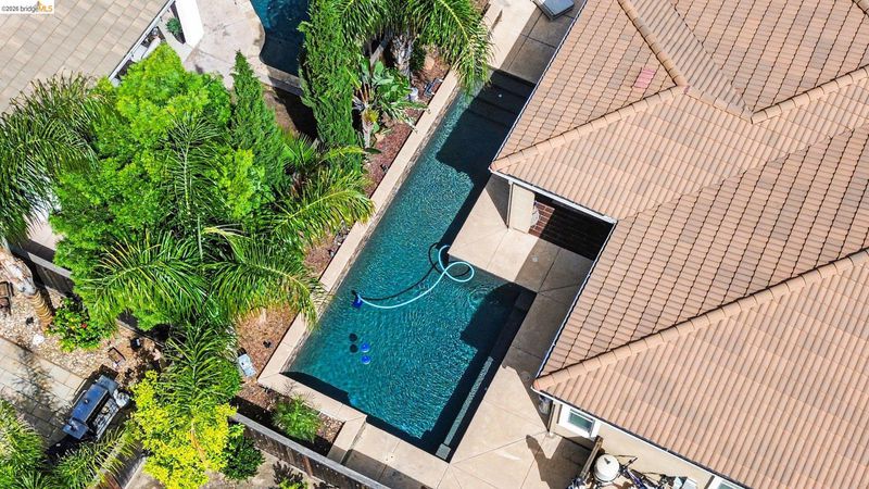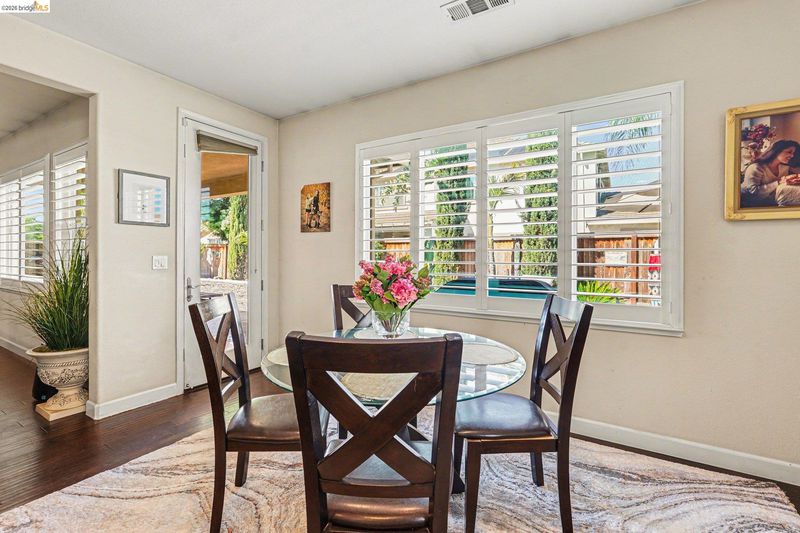 Tucked at the end of a quiet cul-de-sac, this beautifully maintained single-story home offers easy, no-step living with a warm and inviting feel throughout. Upgraded HARDWOOD flooring and Hunter Douglas plantation shutters create a clean, cohesive look, while the open-concept layout makes everyday living and entertaining effortless. The kitchen features granite countertops, stainless steel appliances, and an island with eat-in seating that flows seamlessly into the living and dining areas. Spacious bedrooms provide comfort and flexibility, including two bedrooms connected by a convenient Jack and Jill bathroom, while the remaining baths offer double sinks, large showers, and soaking tubs. The backyard is designed for true California living, complete with a covered patio, in-ground pool, and low-maintenance landscaping. Additional highlights include a Spanish tile roof and pre-wiring for solar, all set in a desirable neighborhood close to parks, shopping, and top-rated schools.